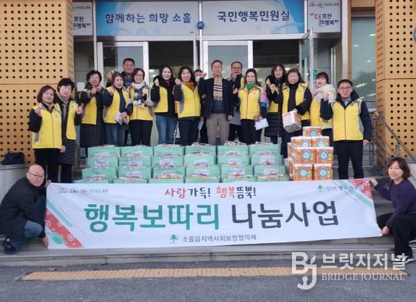브릿지저널 김경미 기자 | 포천시 소흘읍 행정복지센터는 지난 22일 소흘읍지역사회보장협의체가 1인 가구 어르신 결연세대 등 저소득 38가구를 대상으로 ‘행복보따리 나눔사업’을 추진했다고 밝혔다.