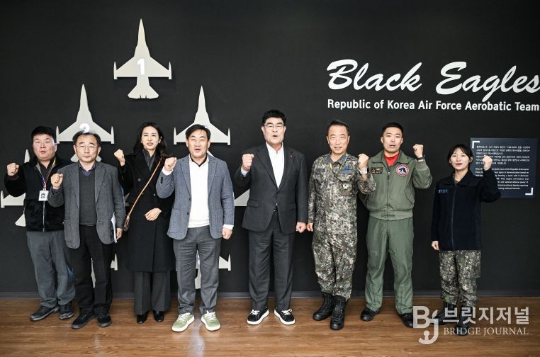 브릿지저널 윤나영 기자 | 삼척관광문화재단(이사장 박상수)이 삼척의 주요 축제에서 화려한 에어쇼로 시민과 관광객들에게 잊지 못할 감동을 선사한 대한민국 공군 특수비행팀 ‘블랙이글스’를 직접 찾아 감사의 뜻을 전했다.