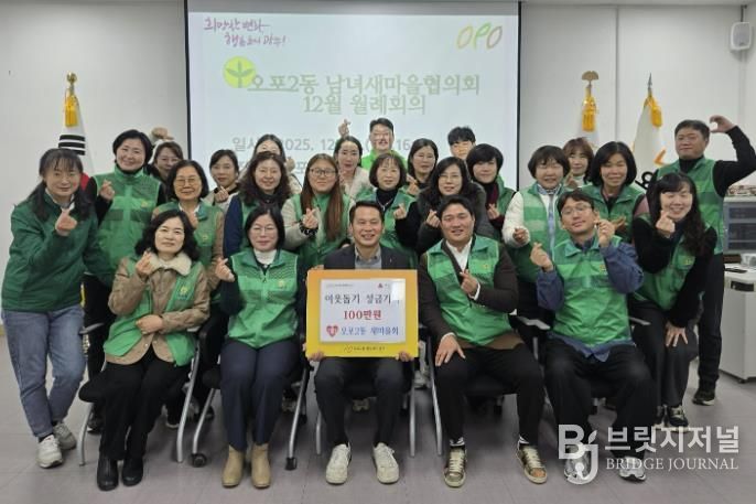 이에 대해 박종덕 동장은 “지역사회를 위해 따뜻한 나눔을 실천해 주신 오포2동 새마을회에 감사드린다”며 “기탁된 성금은 지역 내 취약계층을 위해 투명하고 소중하게 사용하겠다”고 밝혔다.