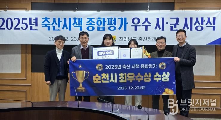 브릿지저널 김경미 기자 | 순천시는 2025년 전라남도 축산시책 종합평가에서 최우수상을 수상했다고 23일 밝혔다.