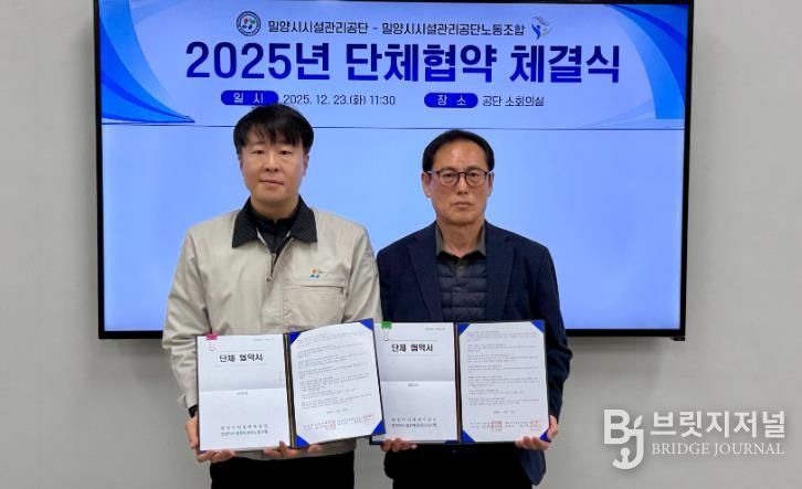 브릿지저널 김경미 기자 | 밀양시시설관리공단은 23일 밀양시시설관리공단 노동조합과 2025년도 단체협약을 체결했다.