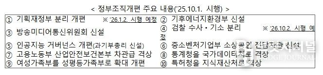 먼저, 정부조직개편은 특정 부처에 집중된 기능과 권한을 재배치하고, 기후 변화, AI 대전환 등 미래 위기에 선제적으로 대응하기 위해 기획재정부 분리 개편, 기후에너지환경부 신설 등을 중심으로 추진했다.