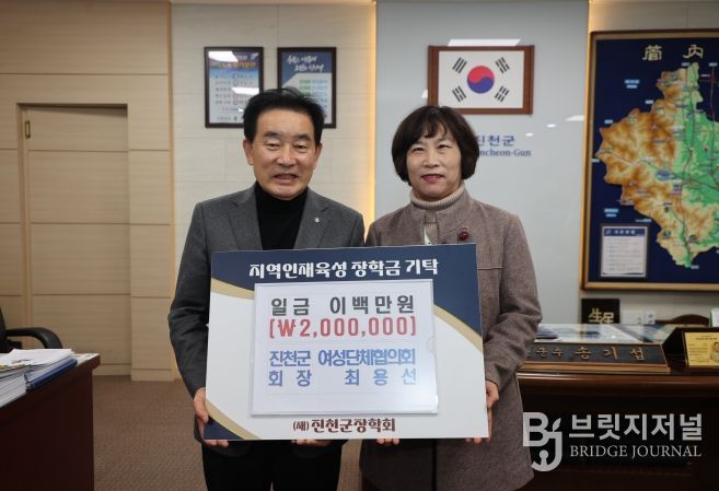 브릿지저널 김경미 기자 | 충북 진천군 여성단체협의회(회장 최용선)는 23일 (재)진천군장학회를 방문해 지역 인재 육성을 위해 써달라며 장학금 200만원을 기탁했다.