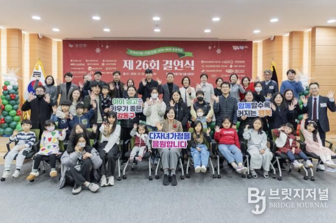 브릿지저널 김경미 기자 | 서울 강동구는 지난 12월 22일, 강동구청 대강당에서 ‘다자녀 가정-기업(단체) WIN-WIN 프로젝트’ 제26회 결연식을 개최했다고 24일 밝혔다.