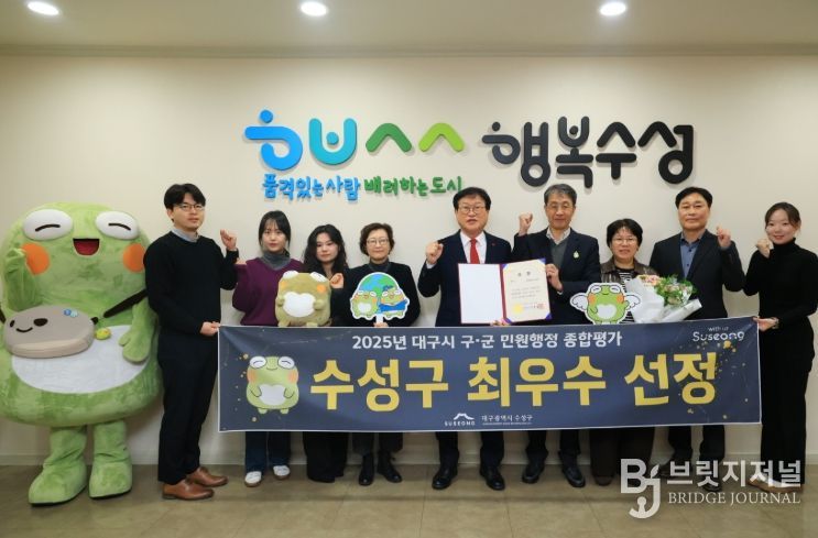 브릿지저널 김진석 기자 | 대구 수성구는 대구시가 주관한 ‘2025년 구·군 민원행정 종합평가’에서 최우수 기관으로 선정됐다고 24일 밝혔다.