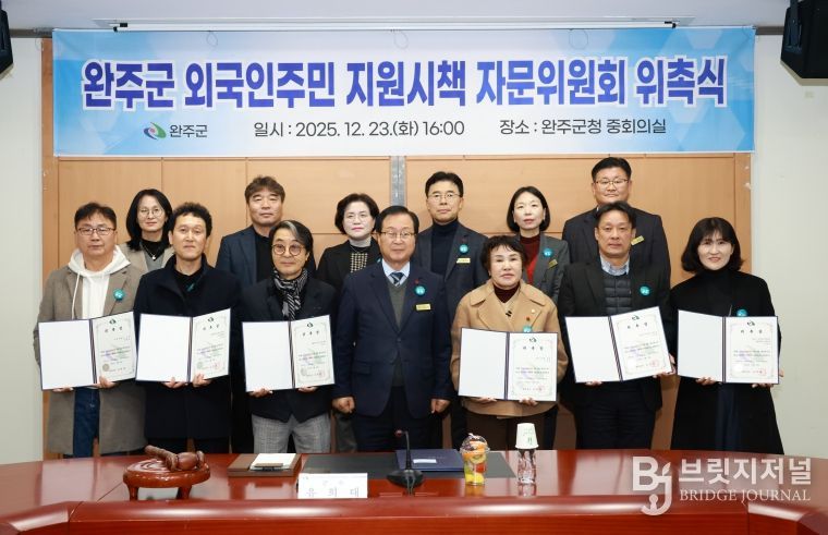 브릿지저널 윤나영 기자 | 완주군이 외국인 주민 지원 정책의 체계적 추진을 위해 ‘외국인주민 지원시책 자문위원회’를 구성하고, 지난 23일 중회의실에서 위촉식을 열었다.