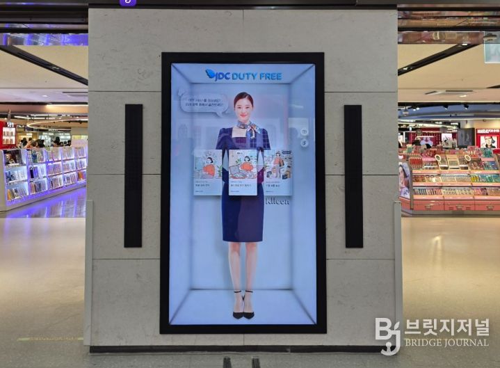 JDC면세점은 국내 면세점 업계 최초로 최신형 무안경 3D 디스플레이와 양방향 소통형 AI 가상 모델 제이디(J-Di)′를 결합한 차세대 스마트 안내 시스템을 전격 도입했다고 24일 밝혔다.