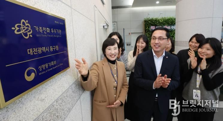 브릿지저널 정보영 기자 | 대전 동구는 성평등가족부가 주관하는 ‘가족친화우수기관’ 재인증을 통과함에 따라, 청사 내 현판 교체식을 진행했다고 24일 밝혔다.