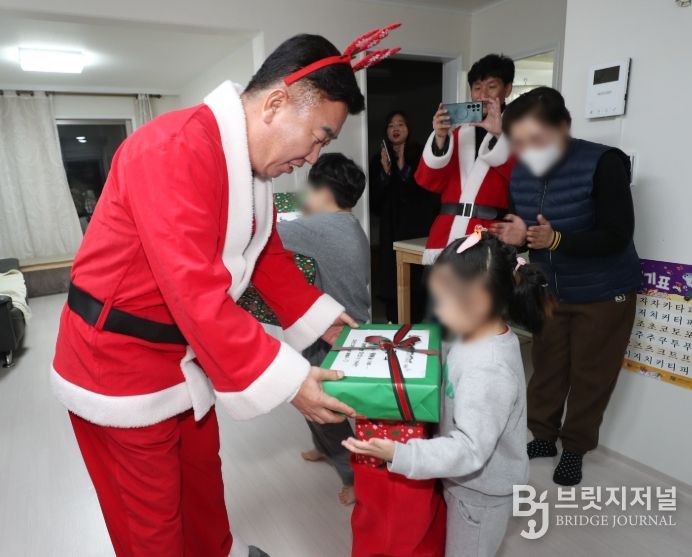 브릿지저널 김경미 기자 | 청주시는 지난 23일 이범석 청주시장과 무심천라이온스클럽(회장 신동욱) 회원 30여명이 산타클로스로 변신해 지역 내 저소득 가정 아동 100명에게 크리스마스 선물을 전달했다.