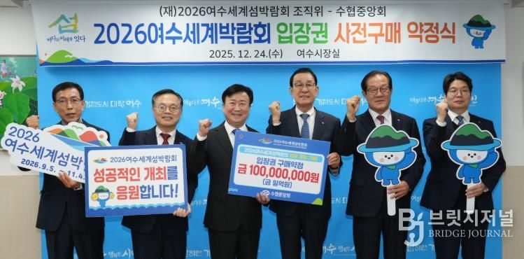 브릿지저널 김경미 기자 | (재)2026여수세계섬박람회조직위원회는 지난 24일, 수협중앙회와 섬박람회 성공개최를 위한 1억 원 규모의 입장권 구매약정을 체결했다고 밝혔다.