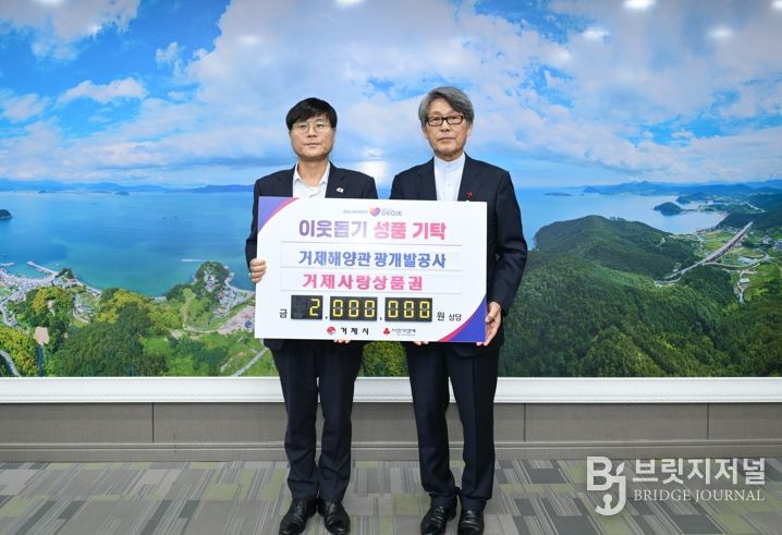 브릿지저널 김경미 기자 | 거제시는 거제해양관광개발공사(사장 지영배)가 24일 지역 내 취약계층을 돕기 위해 거제사랑상품권 200만 원을 거제시에 기탁했다고 밝혔다.