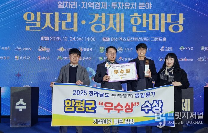 군 관계자는 “이번 수상은 열악한 투자 여건 속에서도 기업 유치를 위해 힘써 온 공직자들의 노력과, 함평을 믿고 투자해 준 기업들의 협력이 함께 이뤄낸 성과”라며 “앞으로도 ‘기업하기 좋은 함평’을 목표로, 지역 산업 경쟁력 강화와 양질의 일자리 창출을 위한 투자유치 활동을 지속해 나가겠다”고 말했다.