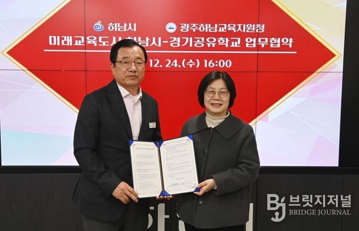 브릿지저널 김경미 기자 | 하남시는 24일 시청 집무실에서 경기도광주하남교육지원청과 지역 교육 협력을 강화하기 위한 '미래교육도시 하남시–경기공유학교 업무협약'을 체결했다고 밝혔다. 이날 협약식에는 이현재 하남시장을 비롯해 오성애 광주하남교육지원청 교육장 등 양 기관 관계자들이 참석했다.