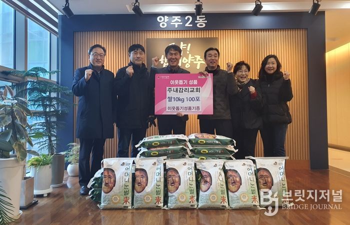 브릿지저널 김경미 기자 | 양주2동은 지난 24일 양주시 만송동 소재 주내감리교회가 연말을 맞아 쌀 10kg 100포를 기탁했다고 전했다.