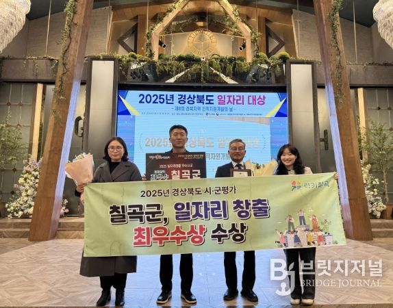 브릿지저널 정보영 기자 | 칠곡군은 경상북도가 실시한 2025년 시군 일자리창출 추진실적 평가에서 종합실적 부문 최우수 시군으로 선정되는 영예를 안았다.