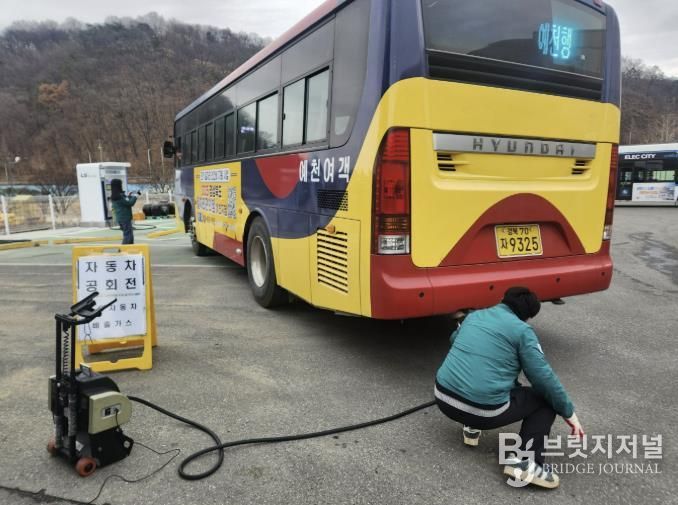 브릿지저널 정보영 기자 | 예천군은 지난 23일, 예천시내버스터미널 차고지에서 예천시내버스 등 경유차에 대한 배출가스(매연) 특별 점검을 실시했다.