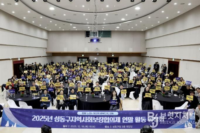 브릿지저널 김경미 기자 | 서울 성동구는 지난 12월 18일 오후 3시 성동구청 3층 대강당에서 '2025년 성동구지역사회보장협의체 연말 활동 공유회'를 성공적으로 개최했다고 밝혔다.