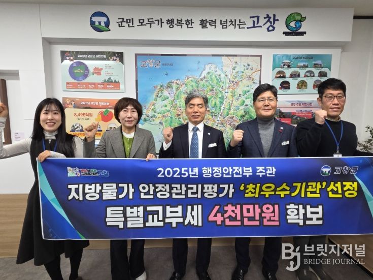 브릿지저널 윤나영 기자 | 고창군이 행정안전부 주관 ‘2025년 지방물가 안정관리 평가’에서 전북 군 단위 가운데 유일하게 최고 등급인 ‘가등급’을 받아 ‘최우수 기관’으로 선정됐다고 26일 밝혔다.