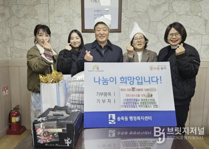브릿지저널 김경미 기자 | 수원시 장안구 송죽동은 지난 24일 장안경찰서로부터 연말을 맞아 지역 내 조손가정 등 취약계층을 위한 후원 물품을 기부했다고 밝혔다.