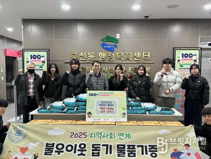 브릿지저널 김경미 기자 | 의정부시 흥선동행정복지센터는 12월 23일 경민대학교 학생원스톱센터가 ‘100일간 사랑릴레이 배턴 잇기’에 동참하해 백미 140kg, 라면 14상자를 기탁했다고 밝혔다.