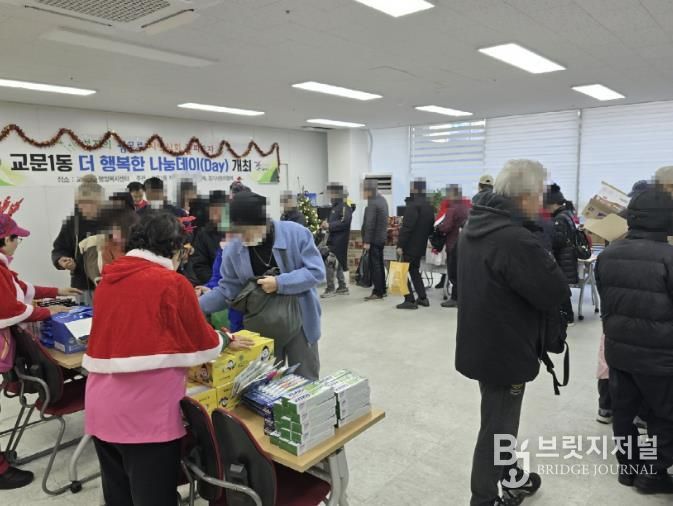 브릿지저널 김경미 기자 | 구리시 교문1동 지역사회보장협의체는 크리스마스를 맞아 지난 12월 24일 관내 청장년 1인 가구 100명을 대상으로 ‘더 행복한 나눔데이’를 개최했다.