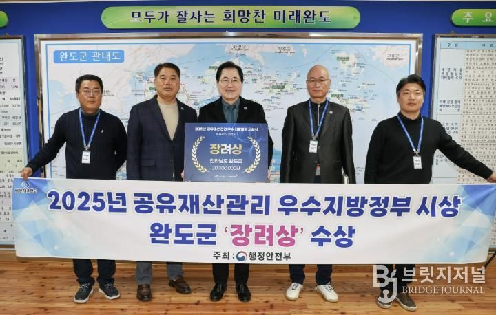 브릿지저널 김경미 기자 | 완도군이 행정안전부가 주관한 ‘2025년 공유재산 총조사 및 관리 분석·진단’ 평가에서 우수 지방자치단체로 선정되어 장려상을 수상했다.