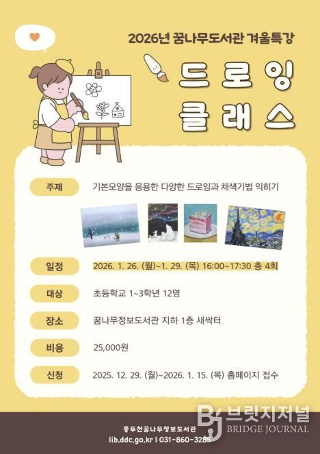 브릿지저널 김경미 기자 | 동두천시 도서문화사업소 꿈나무정보도서관은 초등학생을 대상으로 한 2026년 겨울방학 특강 프로그램을 운영한다고 밝혔다.