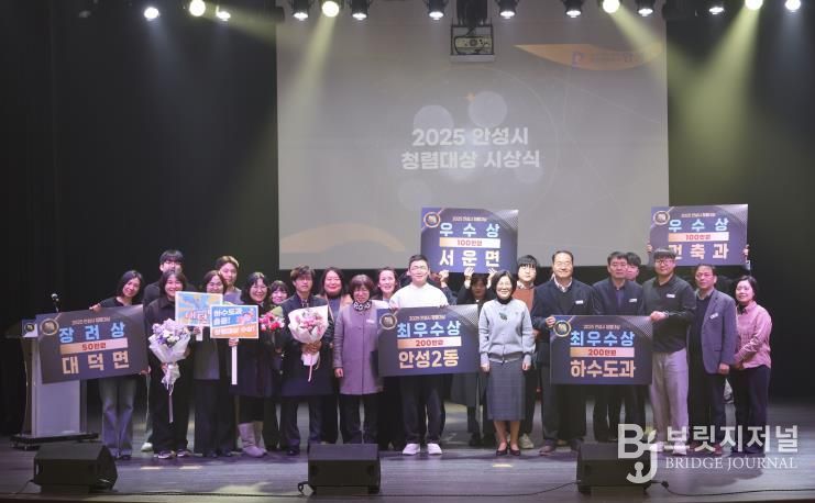 브릿지저널 김경미 기자 | 안성시는 지난 24일 평생학습관에서 ‘2025년 제12회 안성시 청렴대상 시상식’을 개최하고, 한 해 동안 청렴행정 실천에 기여한 우수부서 시상과 함께 더 공정하고 투명한 공직문화 조성을 위한 실천의지를 다지는 시간을 가졌다.