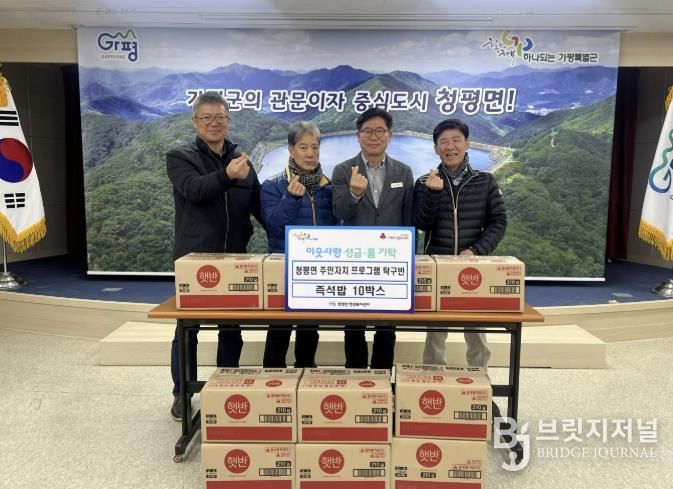 브릿지저널 김경미 기자 | 가평군 청평면 주민자치 프로그램 탁구반 회원들은 최근 청평면 행정복지센터를 방문해 소외된 이웃들이 따뜻한 겨울을 보내길 바라는 마음으로 즉석밥 10박스를 기탁했다.