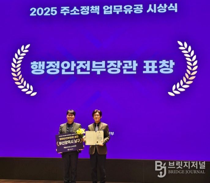 브릿지저널 윤나영 기자 | 부산광역시 남구는 행정안전부가 주관한 ‘2025년 주소정책 업무 유공’ 분야에서 우수 기관으로 선정돼 행정안전부 장관 표창을 수상하고, 특별교부세 4천만 원을 확보했다고 밝혔다.