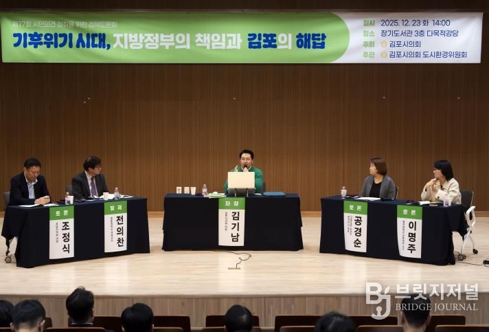 브릿지저널 김경미 기자 | 김포시의회 도시환경위원회는 12월 23일 장기도서관에서 ‘기후위기 시대, 지방정부의 책임과 김포의 해답’을 주제로 제17회 정책토론회를 열었다.