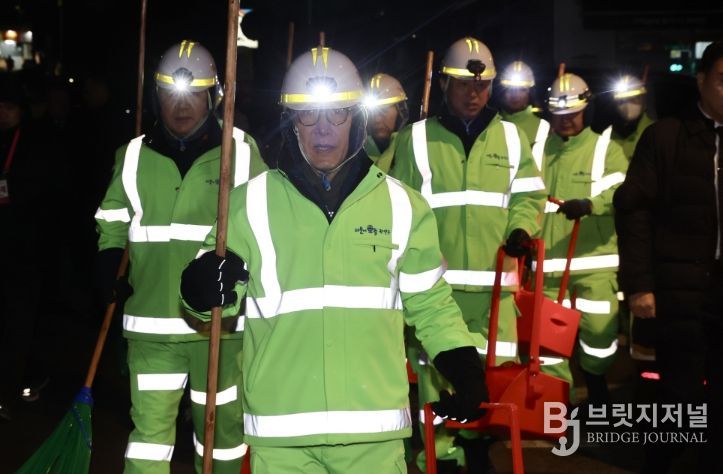 브릿지저널 김경미 기자 | 김민석 국무총리는 12월 26일 6시 30분경, 서울특별시 관악구 서원동 환경공무관 업무공간을 방문해 직접 거리를 청소하고 담소를 나누며 격려하는 시간을 가졌다.