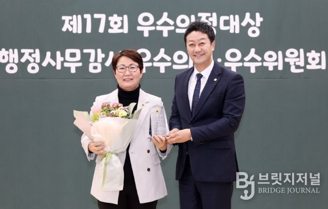 브릿지저널 김경미 기자 | 경기도의회 성복임 의원(더불어민주당, 군포4)이 26일 대한민국시도의회의장협의회가 시상하는 '제17회 우수의정대상'을 수상했다.