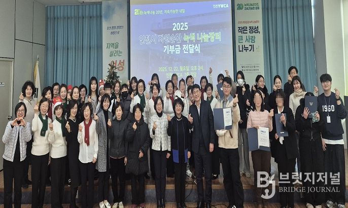 브릿지저널 김경미 기자 | 인천광역시는 지난 12월 22일 (사)인천YWCA와 함께 ‘자원순환 녹색 나눔장터’운영을 통해 조성된 기부금 약 4백여만 원을 한부모가정과 자립준비청년 등 지역사회 이웃 10곳에 전달했다고 밝혔다.