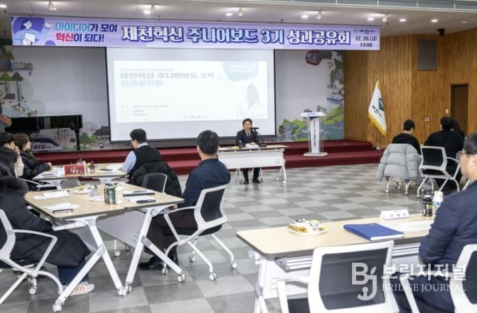 브릿지저널 김경미 기자 | 제천시는 지난 26일 ‘제천혁신 주니어보드 성과공유회’를 개최하고, 주니어보드 3기가 지난 1년간 발굴한 혁신 아이디어를 발표하고 공유하는 뜻깊은 시간을 가졌다.