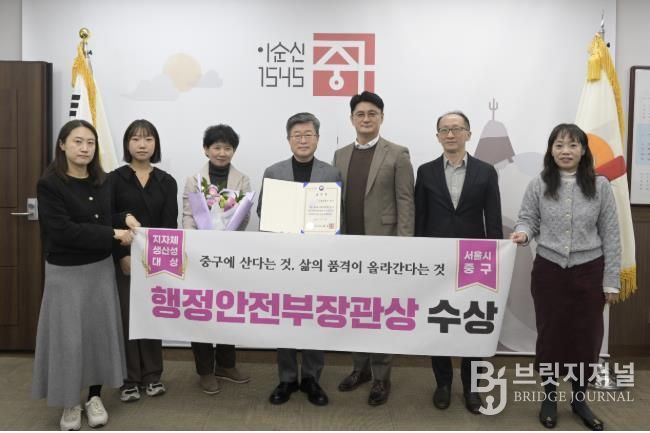 브릿지저널 김경미 기자 | 서울 중구가 '제15회 지방자치단체 생산성 대상'에서 우수상(행정안전부장관 표창)을 수상하며 전국 최고 수준의 행정 경쟁력을 다시 한번 입증했다. 중구는 2년 전 동일한 평가에서 대통령상을 수상한 데 이어, 이번 수상으로 지속적이고 안정적인 역량을 갖춘 자치구임을 확인했다.