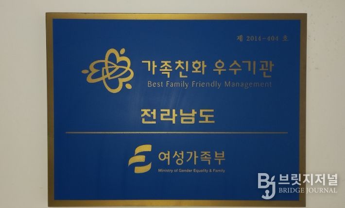 브릿지저널 김경미 기자 | 전라남도는 성평등가족부가 주관하는 ‘가족친화인증기관’ 재인증 심사를 통과해 향후 3년간 인증 자격을 유지하게 됐다.
