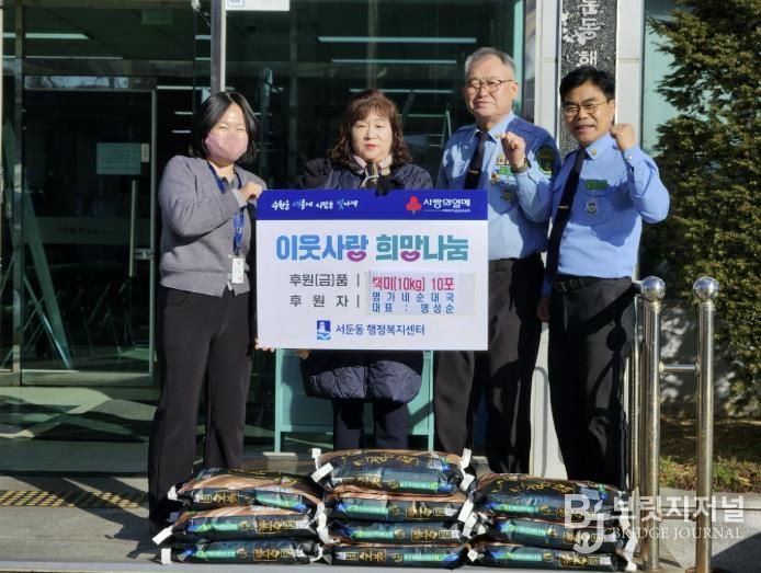 양오선 서둔동장은 “지역사회를 위한 이웃 사랑을 몸소 실천하는 명가네순대국 명성순 대표님께 감사드린다”며 “전달해 주신 소중한 후원물품은 어려운 이웃에게 잘 전달해 드리겠다”라고 말했다.