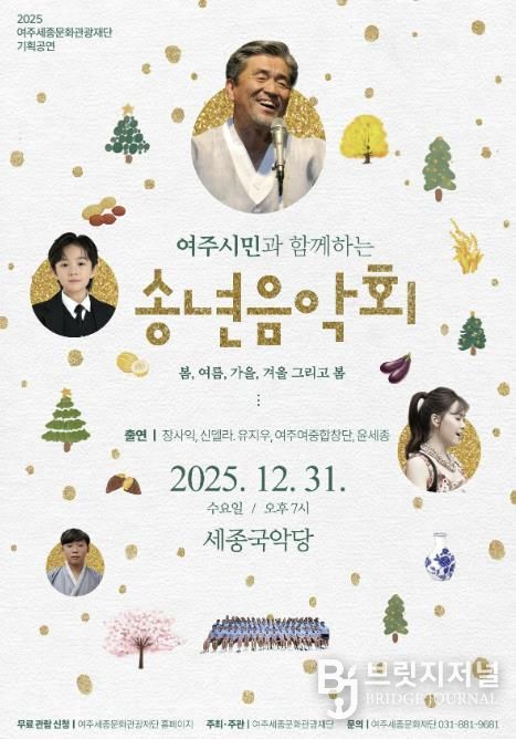 브릿지저널 김경미 기자 | 여주세종문화관광재단이 오는 12월 31일, 세종국악당에서 ‘2025 여주시민과 함께하는 송년음악회’를 개최다.