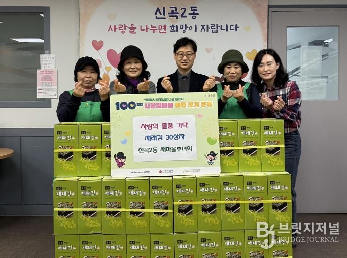 브릿지저널 김경미 기자 | 의정부시 신곡2동주민센터는 12월 24일 신곡2동새마을부녀회가 도시락김 30상자를 기탁하며 ‘100일간 사랑릴레이 배턴 잇기’에 동참했다고 밝혔다.