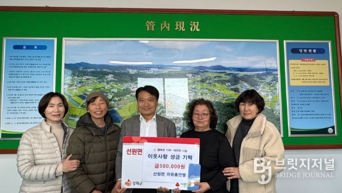 브릿지저널 김경미 기자 | 강화군 선원면은 지난 26일, 한국자유총연맹 선원면분회(회장 이수정)에서 관내 어려운 이웃을 돕기 위한 성금 50만 원을 기탁했다고 밝혔다.