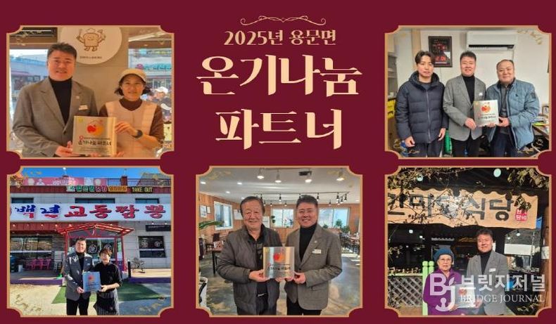 이번 현판 전달은 어려운 이웃을 위해 지속적으로 나눔을 실천해 온 업체에 감사의 뜻을 전하고, 지역사회 나눔 문화를 확산하기 위해 마련됐다. 현판은 △뚜레쥬르 용문점 △먹을집식당 △백년교동짬뽕 용문점 △애크미포크 △한마당식당 등 총 5곳에 전달됐다.