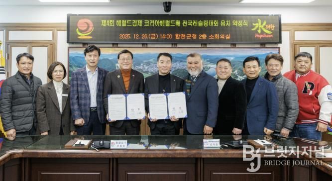 브릿지저널 김경미 기자 | 합천군은 12월 26일 합천군청에서 ‘제4회 헤럴드경제 코리아헤럴드배 전국레슬링대회 및 제4회 전국생활체육 레슬링대회’ 유치 협약을 체결했다고 밝혔다.