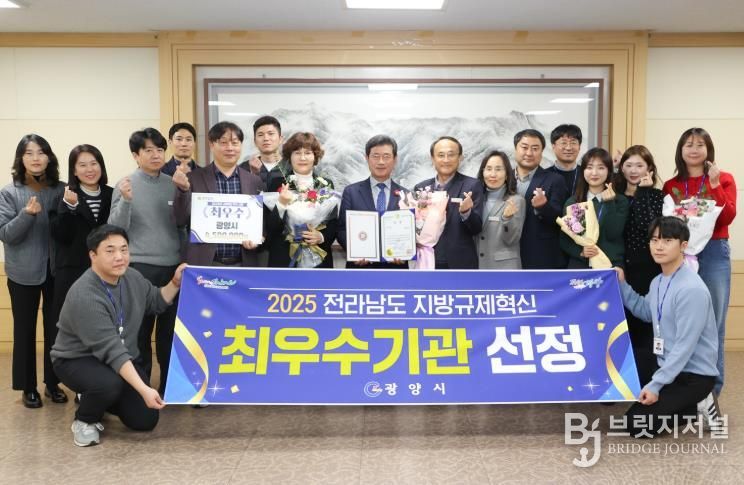 브릿지저널 김경미 기자 | 광양시가 전라남도에서 주관하는 ‘2025년도 시군 규제혁신 평가’에서 최우수기관으로 최종 선정됐다.