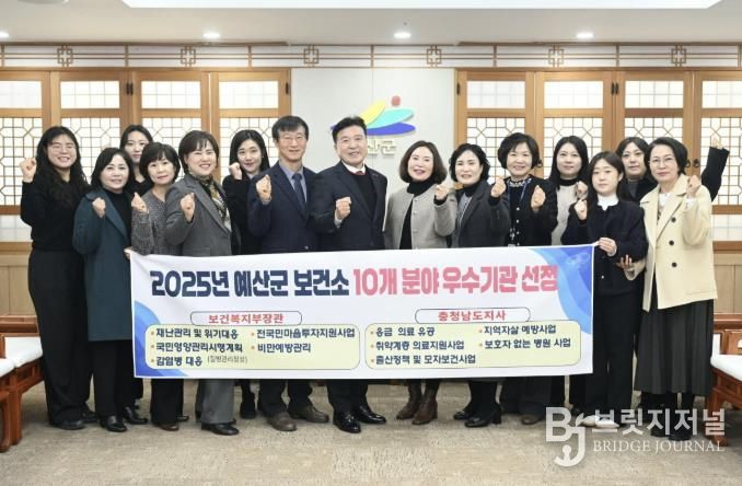 브릿지저널 정보영 기자 | 예산군은 예산군보건소가 2025년 보건 분야 중앙부처와 충청남도 주관 각종 평가에서 10개 분야 우수기관으로 선정되며, 군 단위 지자체 가운데 유일하게 전국 최고 수준의 보건행정 역량을 공식적으로 인정받았다고 밝혔다.
