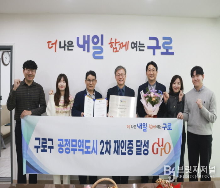 브릿지저널 김경미 기자 | 구로구가 공정무역 실천 도시로서의 위상을 다시 한번 입증했다. 구는 12월 27일 사단법인 한국공정무역마을위원회로부터 ‘공정무역도시’ 2차 재인증을 획득했다.