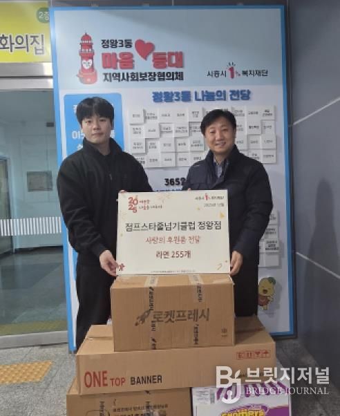 브릿지저널 김경미 기자 | 점프스타줄넘기클럽 정왕점은 지난 12월 29일 정왕3동 지역사회보장협의체를 찾아 저소득 결식 우려 가구를 위한 라면 255개를 전달했다. 이번 후원은 학원생들이 어려운 이웃을 돕기 위해 직접 라면을 모아 마련한 것으로, 나눔의 의미를 더했다.