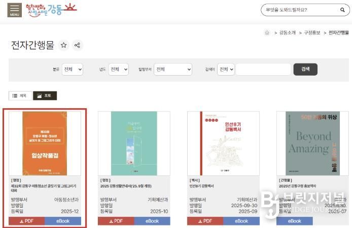 브릿지저널 김경미 기자 | 서울 강동구는 강동구 아동‧청소년이 창작한 글과 그림 작품을 전자 간행물로 제작해 청소년 예술 자료 보관소(아카이브) 형태로 조성한다고 30일 밝혔다.