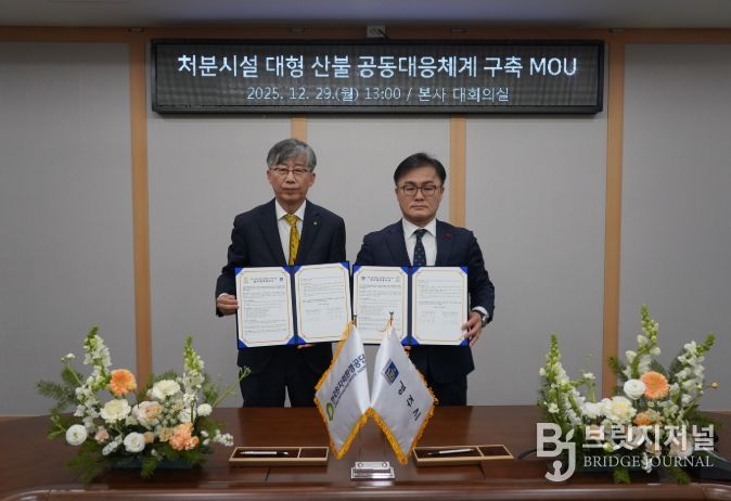 브릿지저널 정보영 기자 | 경주시는 지난 29일 한국원자력환경공단과 산불 발생 시 신속하고 체계적인 대응을 위한 ‘산불 공동대응체계 구축 업무협약(MOU)’을 체결했다.