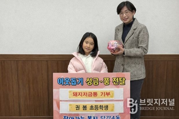 브릿지저널 윤나영 기자 | 부산진구 당감4동는 올해 초등학교 1학생인 권봄 학생이 지역 내 경제적으로 어려운 친구들을 돕기 위해 인생 첫 돼지저금통으로 모은 23만7천 원을 기탁했다는 훈훈한 소식을 전했다.